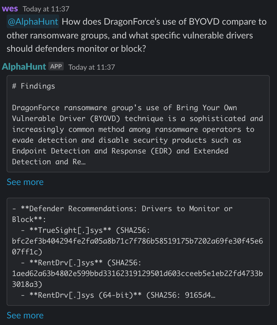 - DragonForce ransomware group aggressively leverages Bring Your Own Vulnerable Driver (BYOVD) techniques, embedding them in customized ransomware variants to evade EDR/AV and escalate privileges.