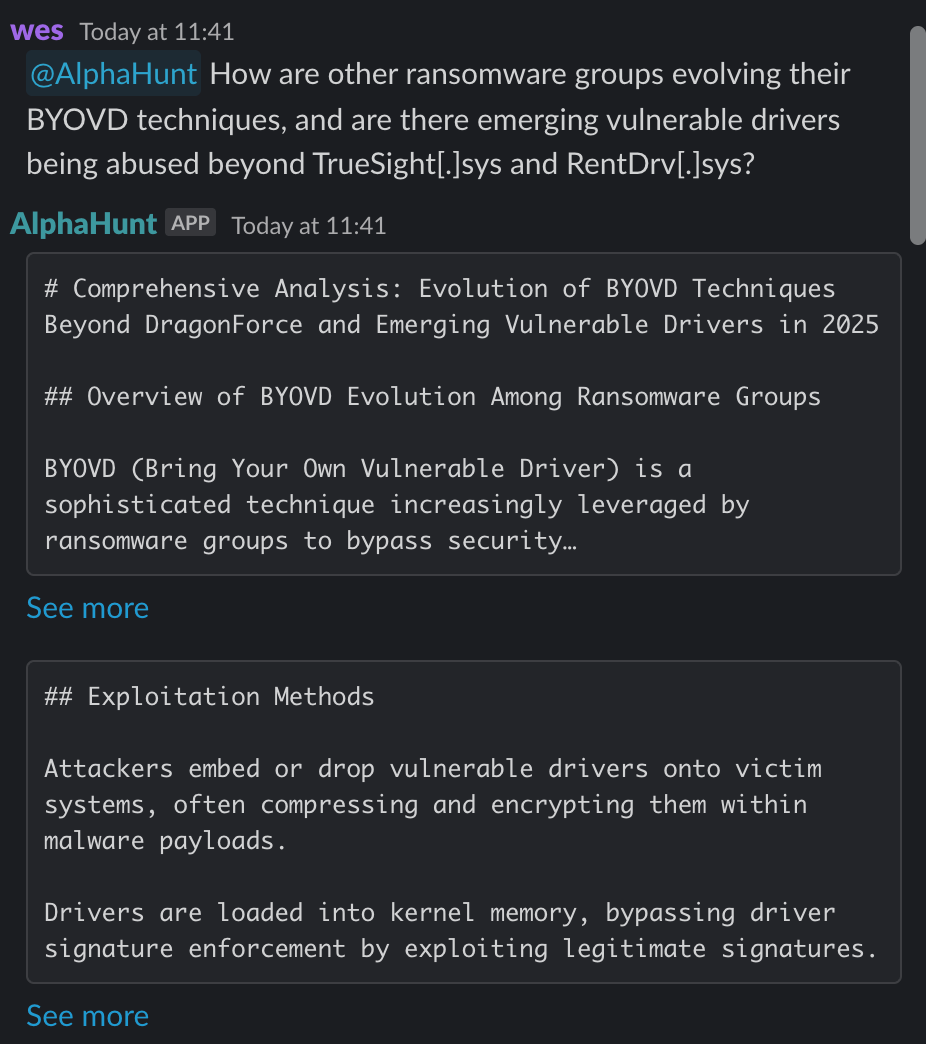 Bring Your Own Vulnerable Driver (BYOVD) techniques have become a prominent method for ransomware groups to evade detection and escalate privileges by exploiting legitimate but vulnerable signed device drivers. This approach allows attackers to bypass Endpoint Detection and Response (EDR) solutions by loading vulnerable drivers that can disable or circumvent security controls at the kernel level. BYOVD has evolved from a niche advanced persistent threat (APT) tactic to widespread use among financially motivated ransomware groups.