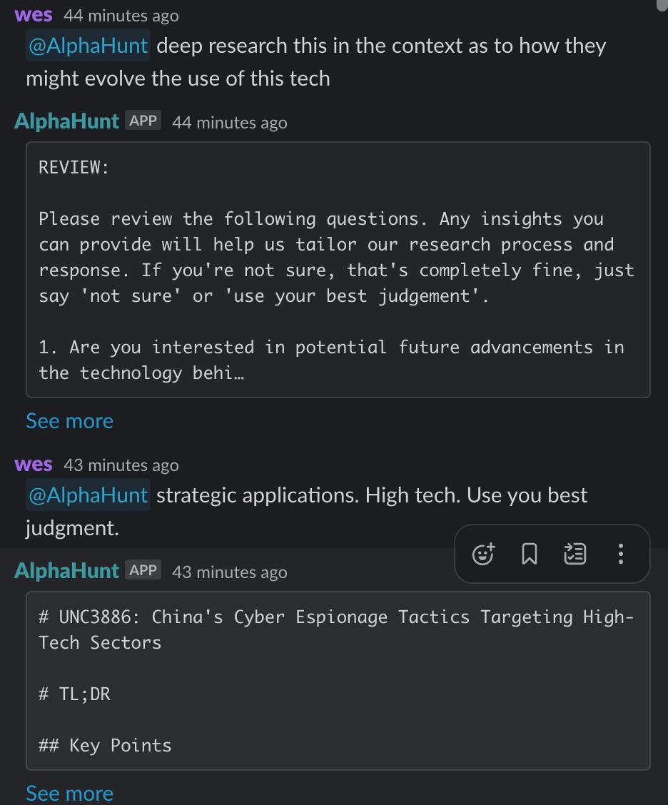 - Defense - Focused on gathering intelligence on military technologies and strategies.