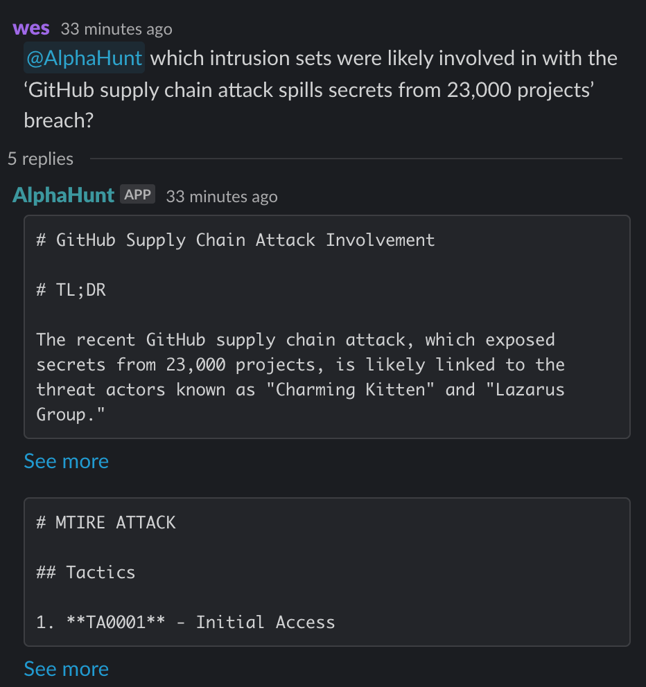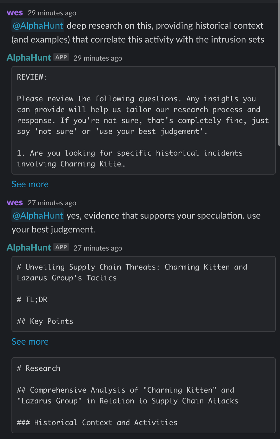 ✅ If I research similar threat actors (or TTPs) in the future, AlphaHunt will remind me of this event.