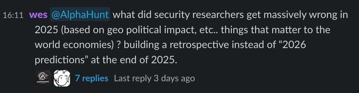 Get intelligence where it counts. No dashboards. No detours. AlphaHunt Converge teases out your intent, reviews the results and delivers actionable intel right inside Slack. We turn noise into signal and analysts into force multipliers.